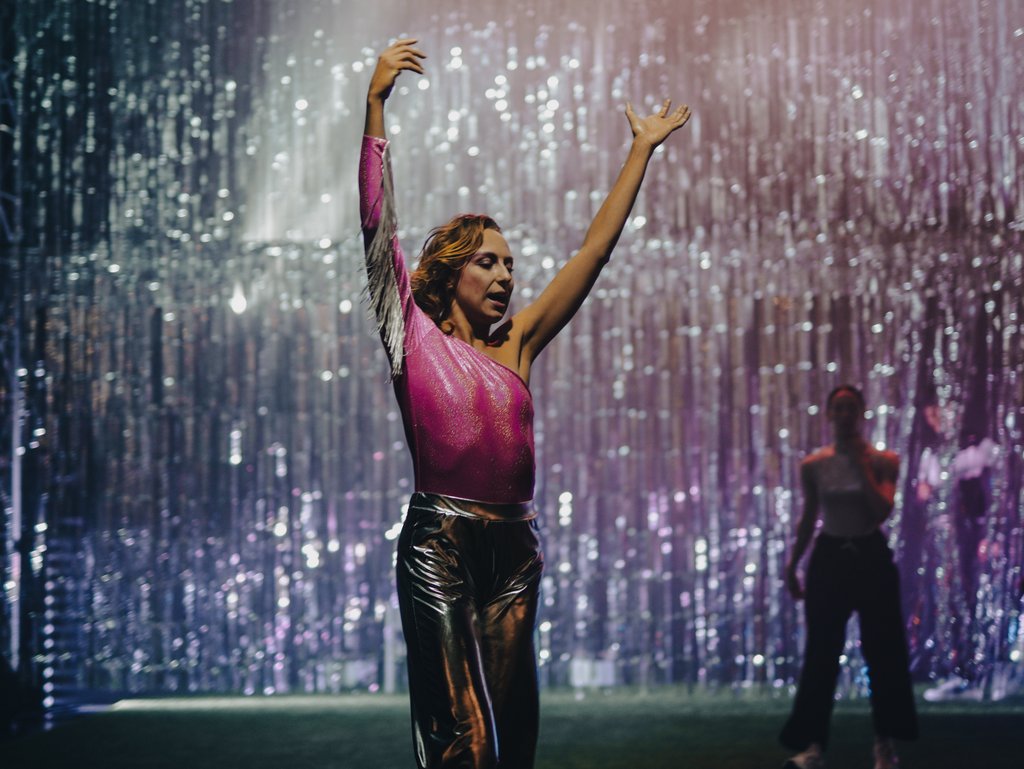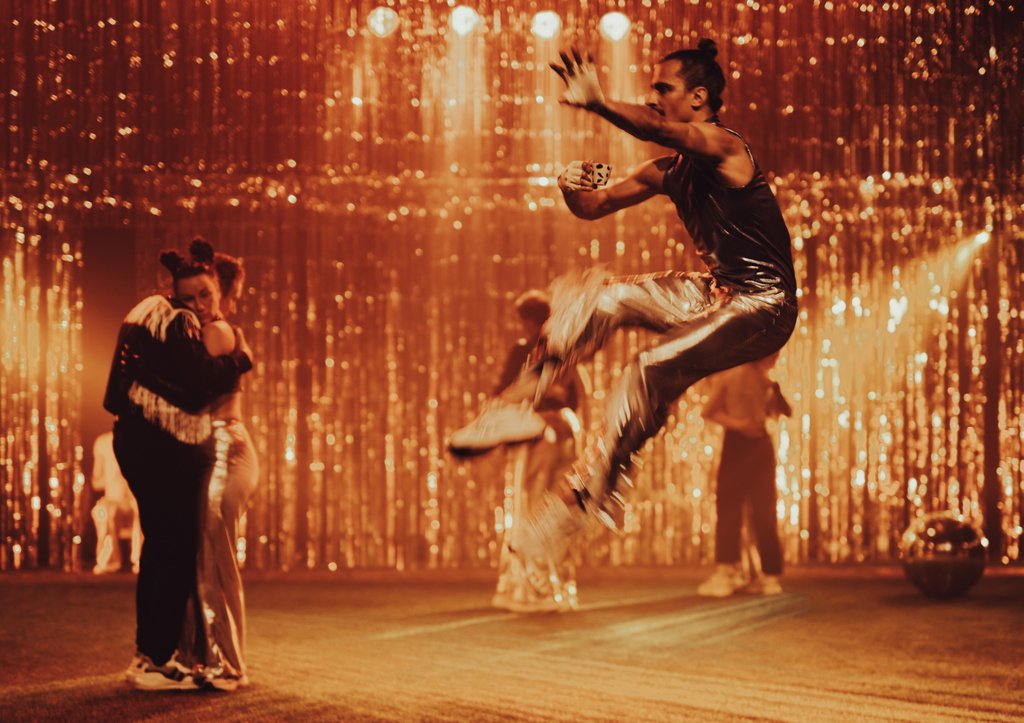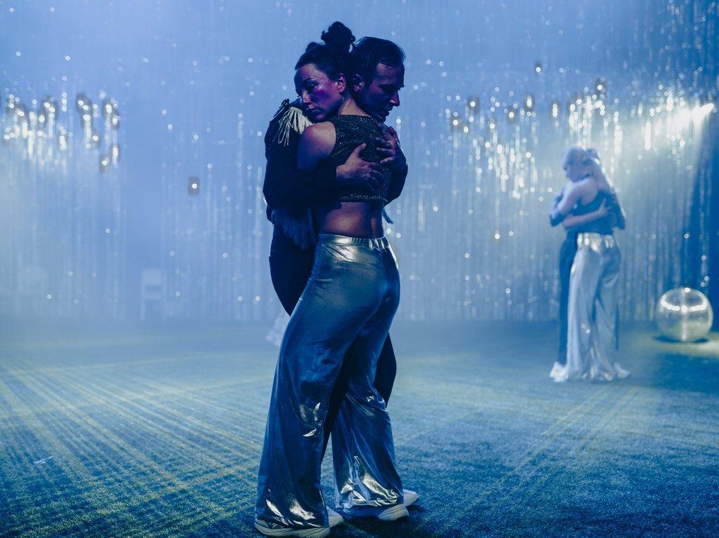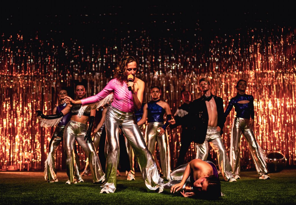 Jednocześnie każdą z tych fantazji wzmacnia pogłębiona praca fizyczna aktorów-tancerzy. Tekst, śpiew, ich wysiłek i pełne zaangażowanie w ten surrealistyczny świat, przepływają wartko przez ich ciała. Energia płynąca ze wzmacniania takich stanów buduje wielowymiarowość przywoływanych figur i obrazów. Powierzchowność kodów kulturowych, wzmacniana siłą generowaną przez indywidualne kreacje i zbiorowe choreografie, przykrywa tłumioną, wewnętrzną energię – trudną do opisania, a jednak będącą głównym tematem spektaklu. Samotność i zniewolenie, które próbujemy kulturowo „opakować”. Konsumujemy z przyspieszeniem nie tylko produkty i obrazy, ale też same chwile. W wiecznej pogoni za czymś co nas wzmocni, nie gromadzimy już wspomnień. Po jakimś czasie jednak, lekkość staje się ciężarem, a szybkość zatraca, zniewala. Wymowny obraz dyskotekowej kuli przetaczanej przez scenę, ciał w nawracających zwolnieniach tempa, powtarzana uporczywie „śmierć dyskotece”.
