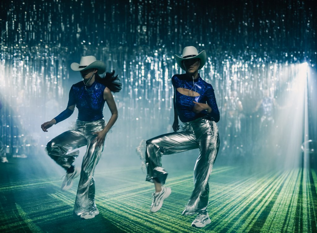 W „Fast Foot Fools” najbardziej eksploatowane są idiomy amerykańskiej popkultury, zarówno muzycznej (która przybiera formę długiej, wywołującej efekt immersji, playlisty znanych szlagierów), jak i filmowej (m.in. nawiązania do westernów, kultury country i figury cow-boys). Pojawiają się też elementy tworzące klimat show z pogranicza występów w Vegas i cyrkowych popisów. Ważną inspiracją jest tu także postać Tony Manero, którą wykreował John Travolta w „Gorączce sobotniej nocy” w reż. Johna Badhama do fantastycznej muzyki Bee Gees. Oprócz próby uchwycenia emocji tej kreacji, ważne jest również wprowadzenie do spektaklu przez Piotrowską świadomie „choreografii drogi”. Przywołując obraz idącego Johna Travoltę nocnymi ulicami Nowego Yorku, konsekwentnie i dość radykalnie stawia na rozbudowanie dźwiękowej warstwy spektaklu, która odzwierciedla nieustanność rytmu disco. To właśnie muzyka przenosi nas do stanu, w którym ciało opanowane jest przez rodzaj performatywnego śnienia. Przechodzimy w nim z łatwością z jednej scenerii do drugiej. Strategią tworzenia spektaklu jest efekt szybkich obrazów, małych kompozycji, drobnych wątków dramaturgicznych postaci, które zmieniają się jak w kalejdoskopie, tworząc obrazy odwołujące się do przyjemności, lekkości, niezobowiązania.