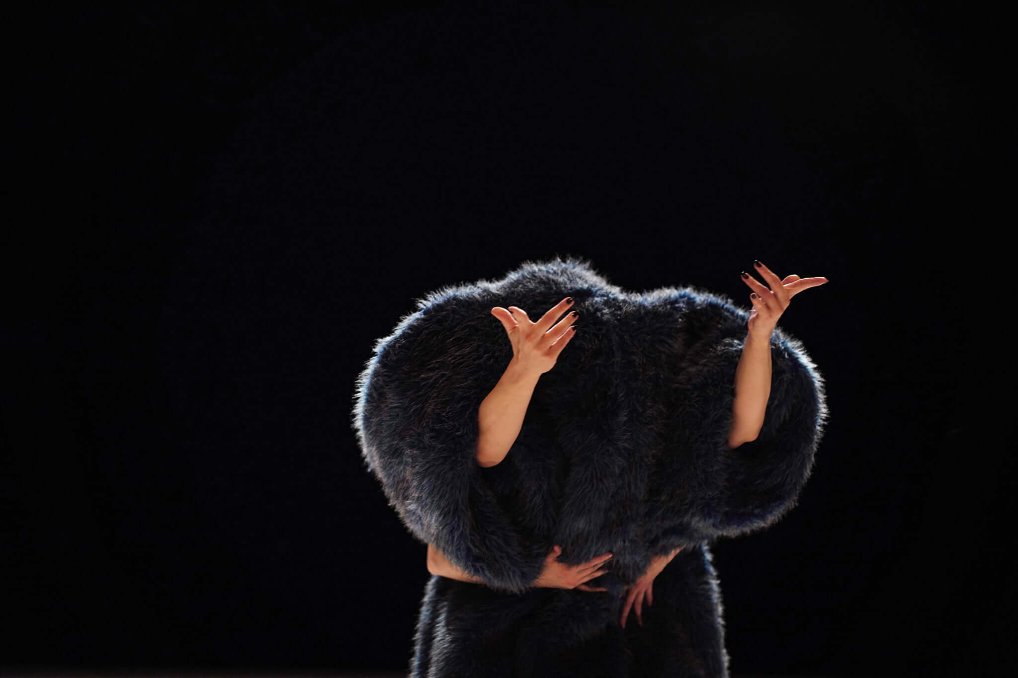 Referring to the definition of territory as a part of the surface belonging to a state, my work examines, among other things, the borders that become fluid through the consciousness of being and coexistence. Territory, also as in animals, is an area defended against other individuals of the same species. From the very beginning of creating the concept I was accompanied by the vision of a self-contained creation, a being. I was absolutely fascinated by the costume, which also becomes a set design. The hypnotic weight, creating an inner, organic trance of people being and living under its influence. The body-object in relationship with the costume creates meaningful images. The current dramatic, world situation in a state of cruel war in Ukraine and inexplicable aggression from Russia, creates deep reflections. The prop I worked with opened up a space of many experiences, evoking in places syndromes of statelessness, homelessness, total insecurity. What is possession? What does consumerism mean for each of us? How much humility is there in us? What are the limits of statehood? To what extent does a territory become an autonomous entity?  On whose side is deep empathy and compassion. Ultimately, dualism resounds and the understanding that there is a place for everyone. Ecological themes of living in total symbiosis and in harmony with the world order. North, south, east, west, inside, outside, possession, emptiness. What lives, dies. It dies to make room for the new. „Ashes to ashes you were created, dust to dust you shall return…” (AP)